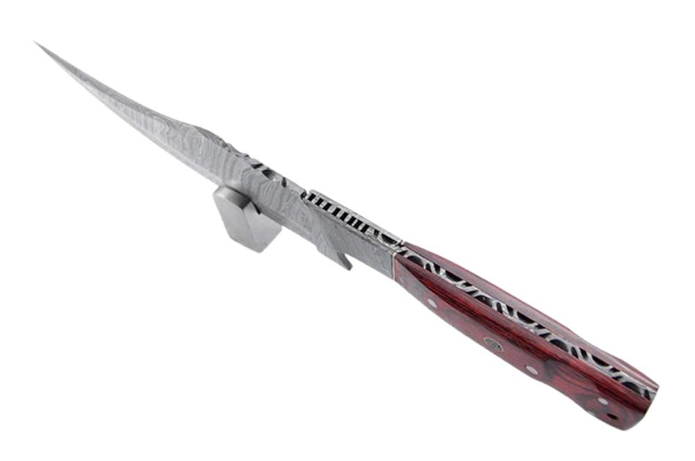 This Damascus steel is a blend of Japanese 4340 steel and 1080 high carbon steel. Each blade boasts an impressive hardness of 54-58 HRC.
